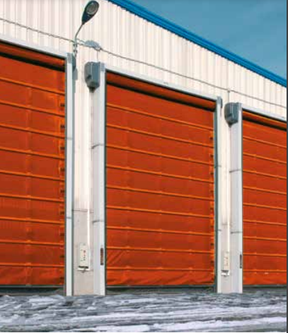 Modelo de puerta rápida industrial fabricada por Nergeco, Esta puerta esta diseñada para operar en entornos exigentes y es ideal para instalaciones donde la rapidez, la durabilidad y eficiencia energética son cruciales